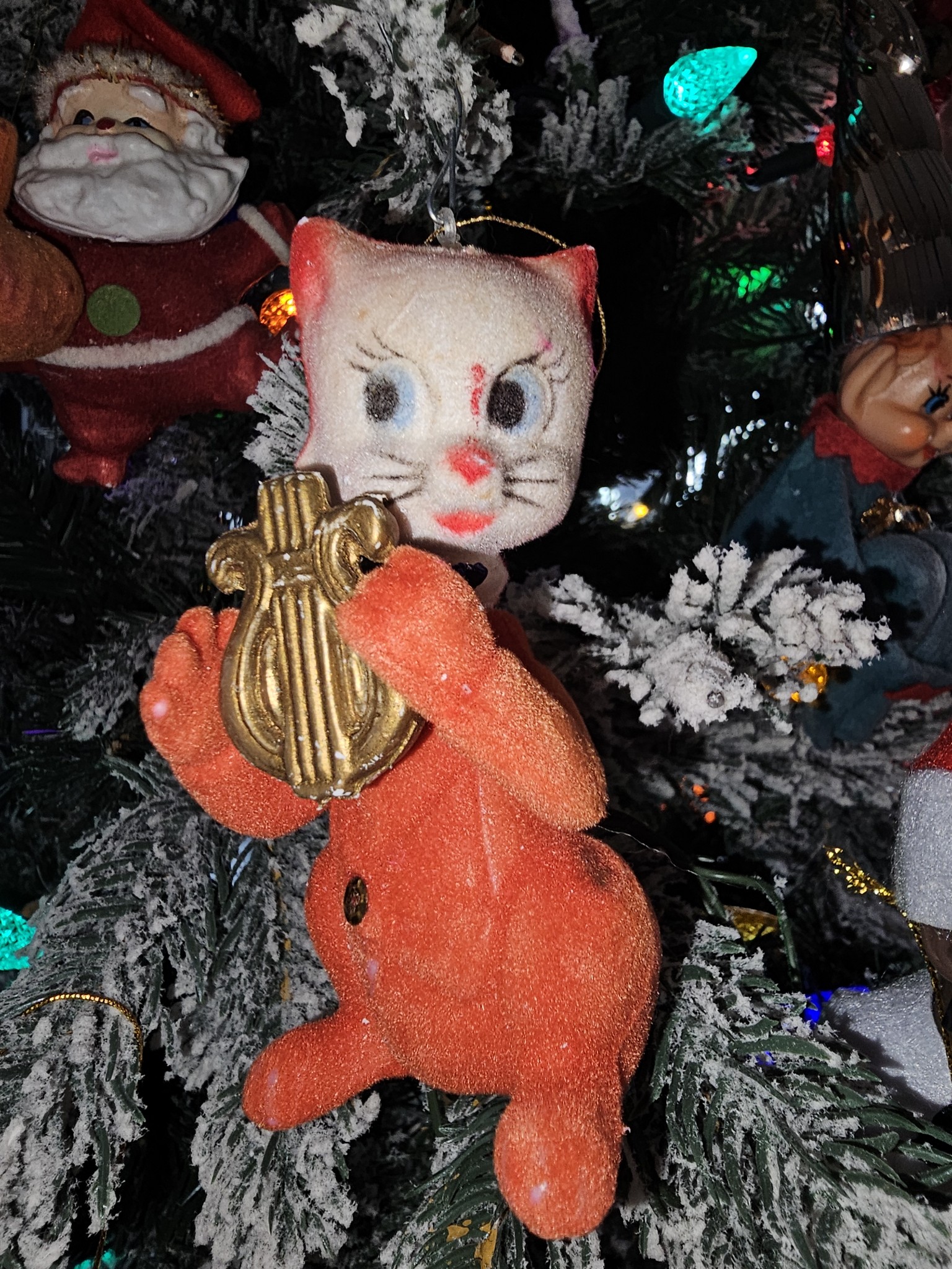 Vintage Christmas Ornament - Cat with Harp - $150.00